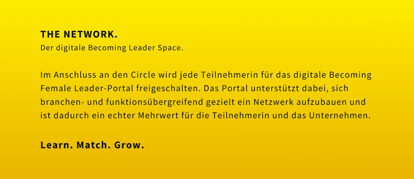 Jede Geschäftsbeziehung beginnt mit einer ersten Begegnung – genau dafür steht der Becoming Female Leader Circle. Wir bringen funktions- und branchenübergreifend weibliche Nachwuchsführungskräfte zusammen, um sich zu ihren Business-Themen auszutauschen, voneinander zu lernen, Synergien zu nutzen und echte Deals anzustoßen. Unser Anspruch: miteinander ins Tun kommen – mit einem einzigartigen Konferenzkonzept. Die Agenda kann individuell zusammengestellt werden. Über das Online-Matching-Portal lassen sich 1:1-Gespräche mit anderen werdenden Führungskräften zu den jeweils relevanten Themen vereinbaren. Ergänzt wird das Programm durch inspirierende Speaker:innen, die neue Perspektiven eröffnen und über den Tellerrand hinausblicken.
